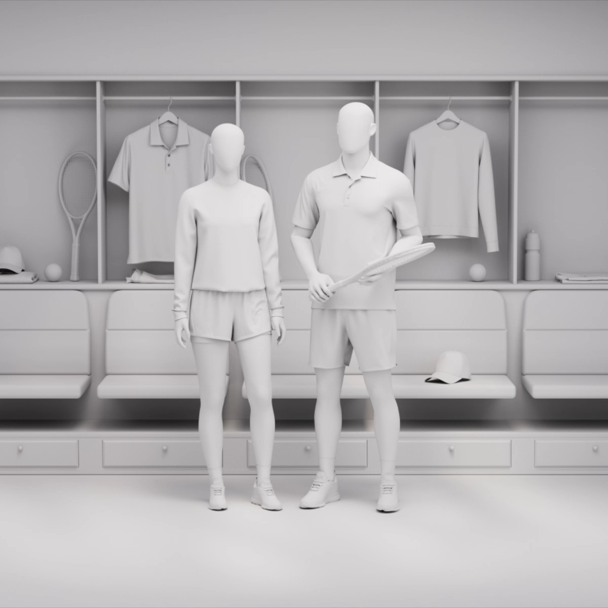 Personalizēti tenisa maču komplekti, siltināšanas apģērbi, akadēmijas apģērbs un klubu preces ar fotoreālistiskām 3D priekšskatījumiem, caurspīdīgām cenām un izsekojamu piegādi.