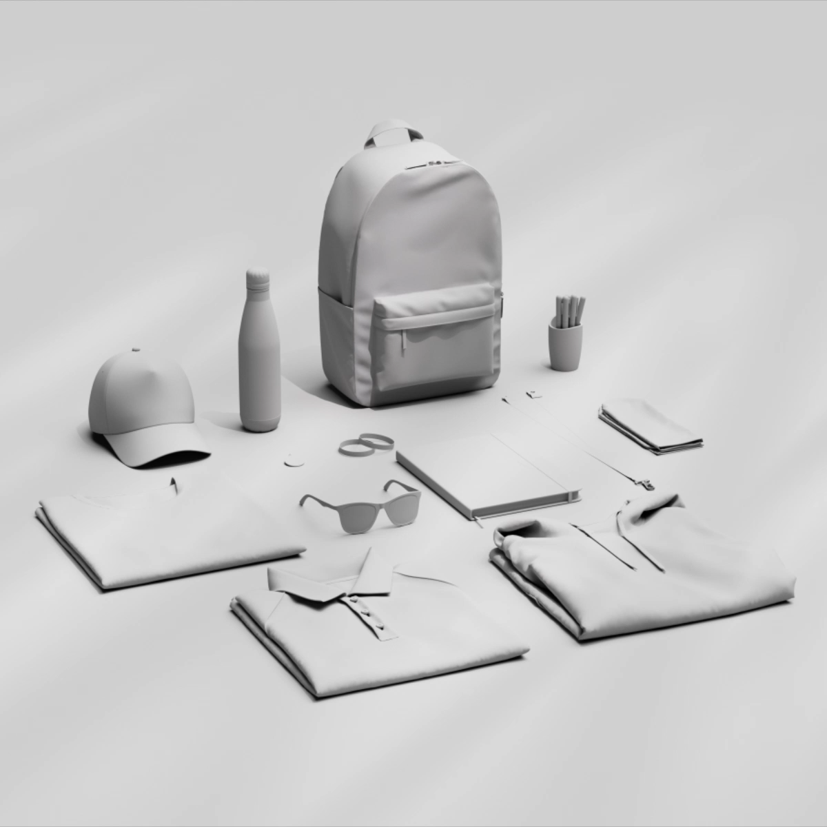Os programas de presentes podem combinar roupas, copos, artigos de papelaria, acessórios tecnológicos, embalagens e encartes impressos em um conjunto de marca.