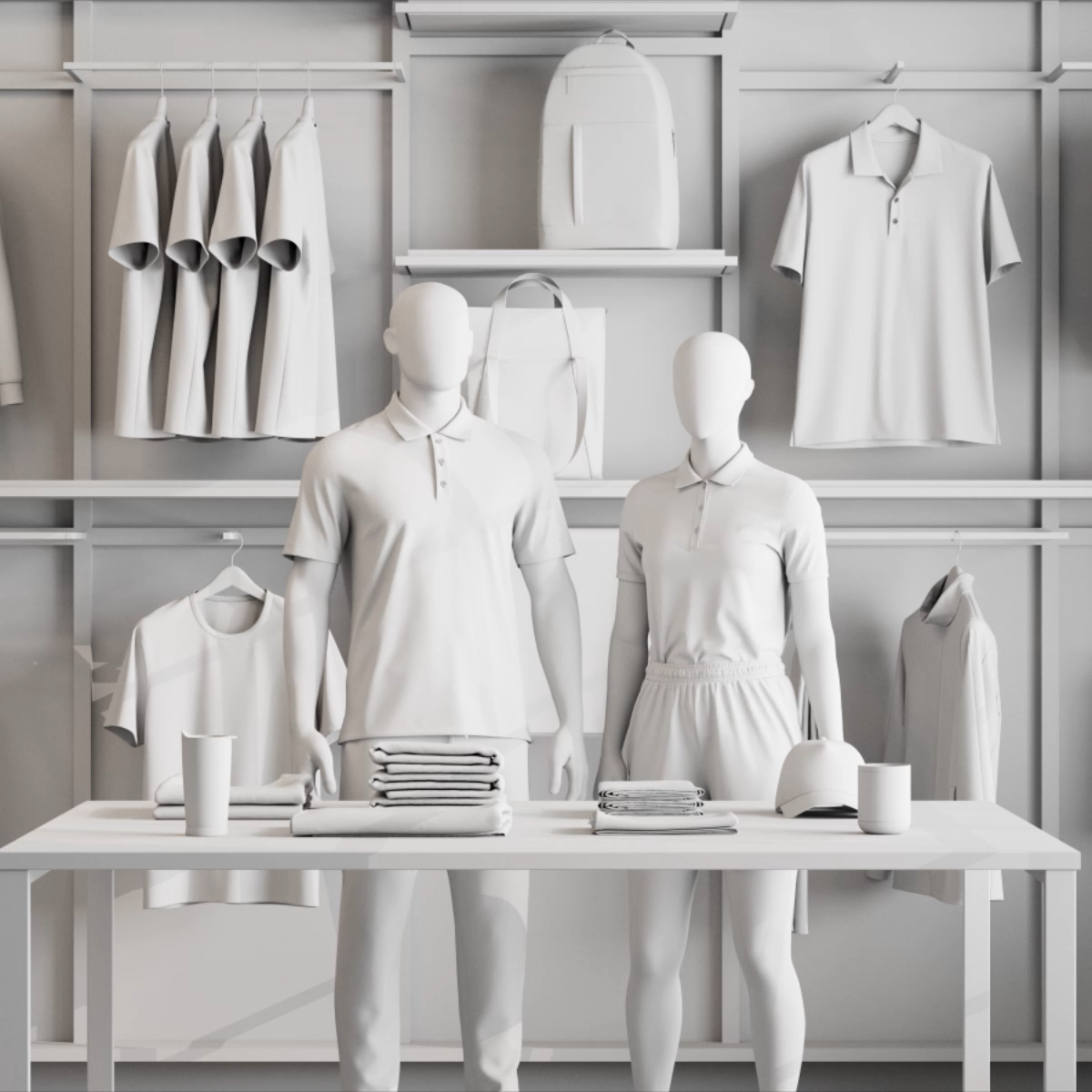 Förhandsgranska uniformer, förkläden, dräkter, nyckelkortsväskor, menyer och välkomstpresenter i photoreal 3D så att varumärkes-, drift- och inköpsteam godkänner samma gästfrihetsprogram innan produktionen startar.